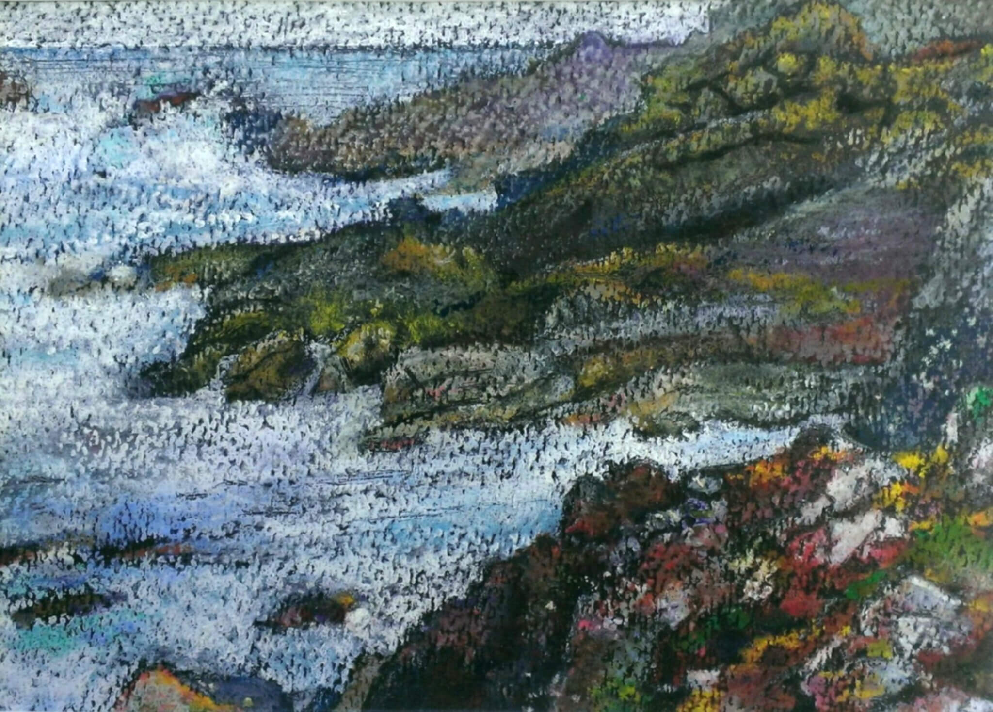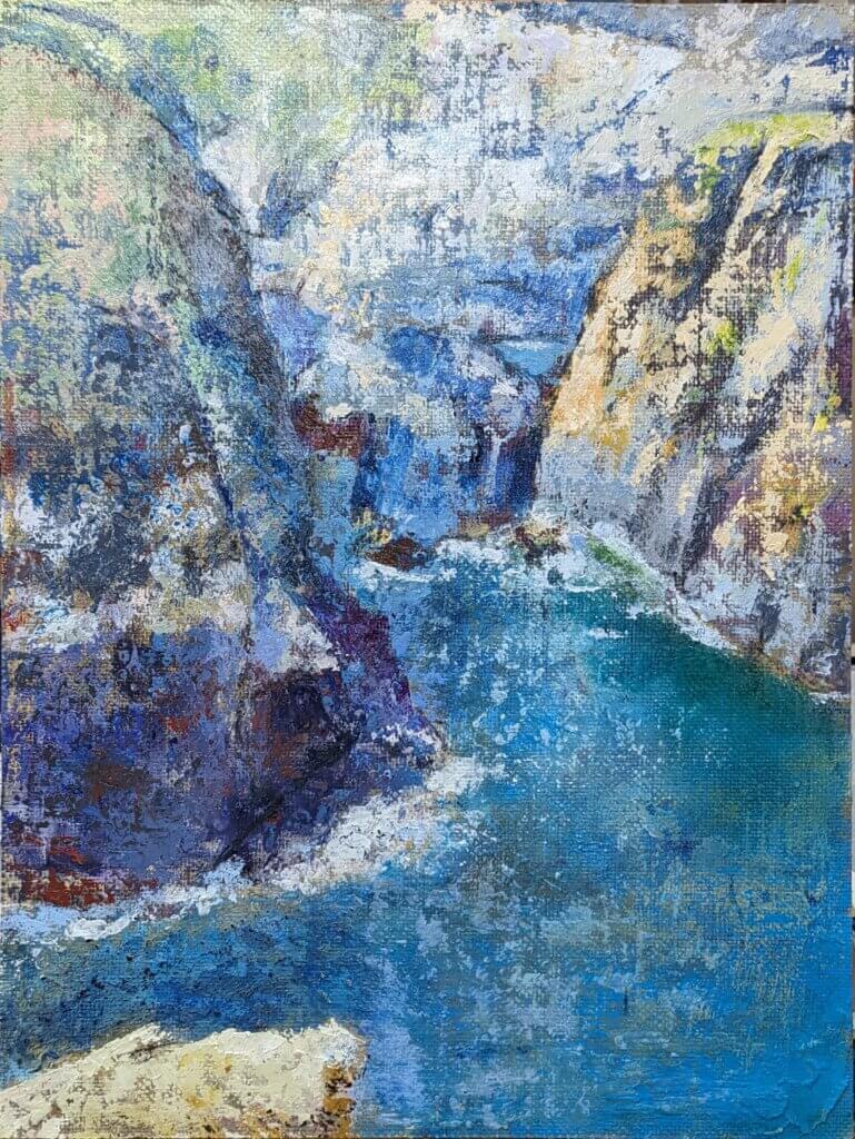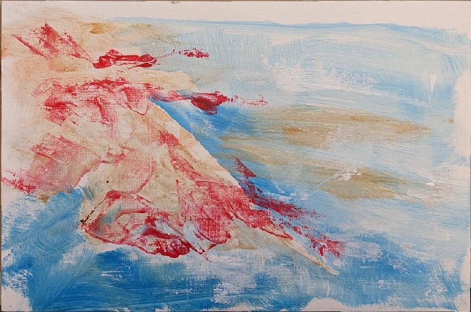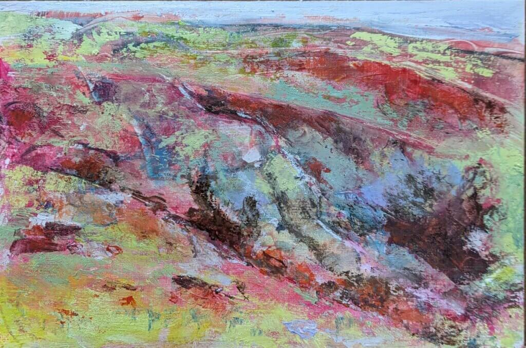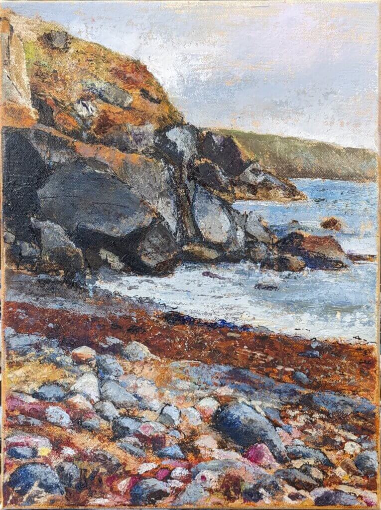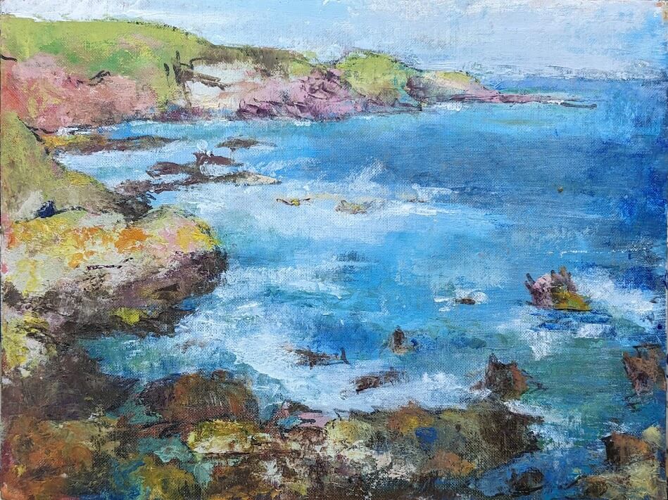 In July 2024 I spent three days at the Newlyn School of Art for a course in expressive landscapes. We were taken to explore the Pendeen peninsular looking down at rocky headlands, into Boat Cove, and a view from a beacon. From there we could look across at a typical Cornish landscape with a mixture of fields and moorland.